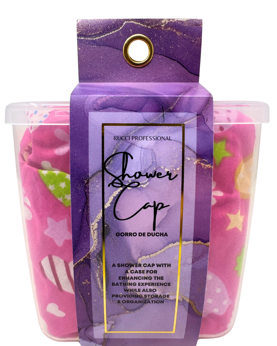 Upgrade your shower routine with the RUCCI PROFESSIONAL® Shower Cap – the cap comes in a durable, reusable storage case with a built-in suction hook. Perfect for keeping your shower cap clean, dry, and always within reach.